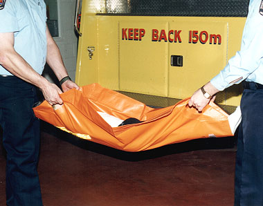Designed for bedridden/wheelchair patients and for general emergency evacuation. Each Patient Carrier has die-cut, angled handholds at every corner and a reinforced vinyl construction. This makes it remarkably flexible and easy for two people to safely carry and manoeuvre patients around tight corners and through narrow spaces.
