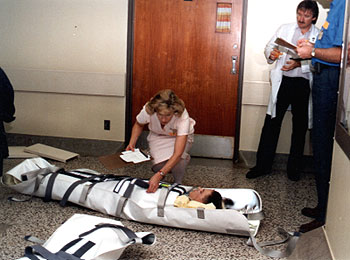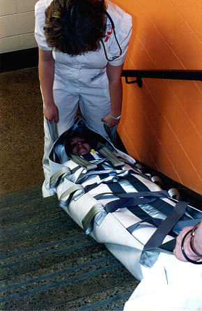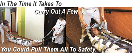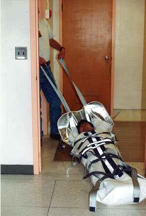 A special fabric covers the bottom to facilitate sliding patients on all floors and stairs. The WEEVAC TC is only as wide as the patient, essential in narrow hallways and stairwells. Two long front straps allow your staff to face forward while pulling the patients to safety. The rear straps help staff negotiate corners and to control the speed during a sliding descent on stairs.